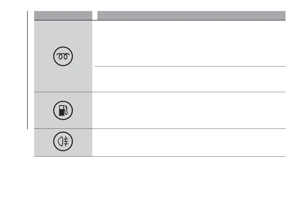 This warning light switches on when 5 to 7 litres of fuel are left in the tank. When the remaining range is
