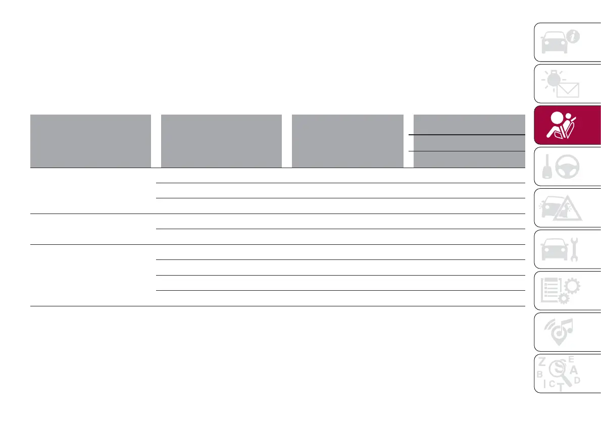 Provided information in the table shows your child-restraint system suitability for various seating position.