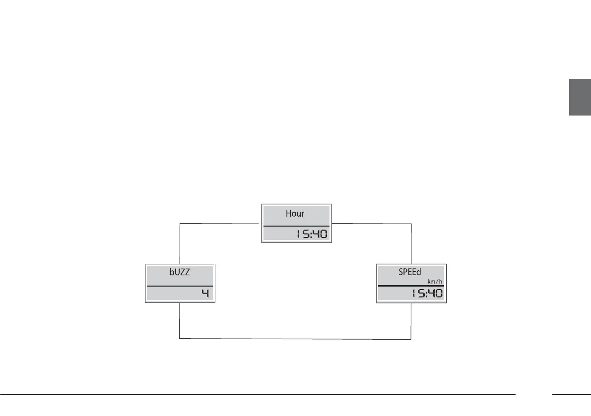 – press the MODE button repeatedly until SPEEd is displayed with the unit of measurement km/h;
