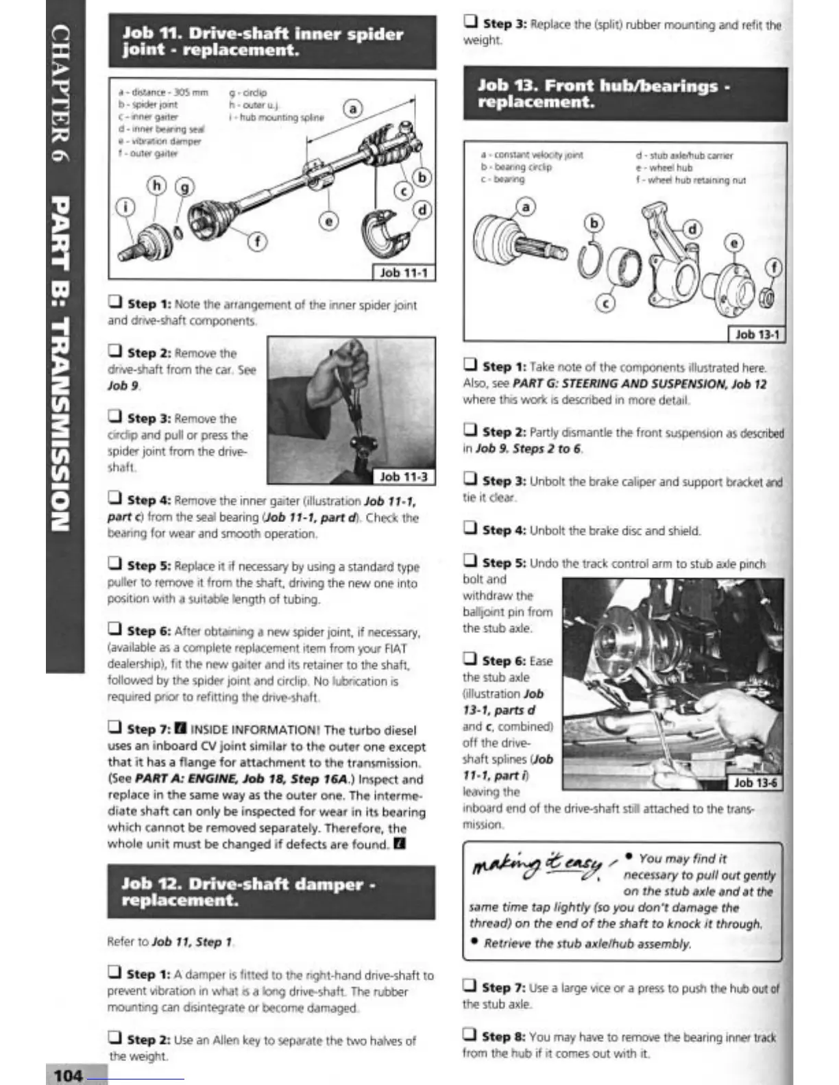 Fiat Tempra 1990 - Drive Shaft Inner Spider Joint Replacement; Drive Shaft Damper Replacement; Front Hub;Bearings Replacement