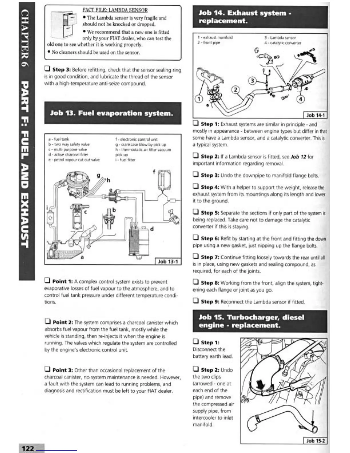 Fiat Tempra 1990 - Fuel Evaporation System; Exhaust System Replacement; Turbocharger Replacement