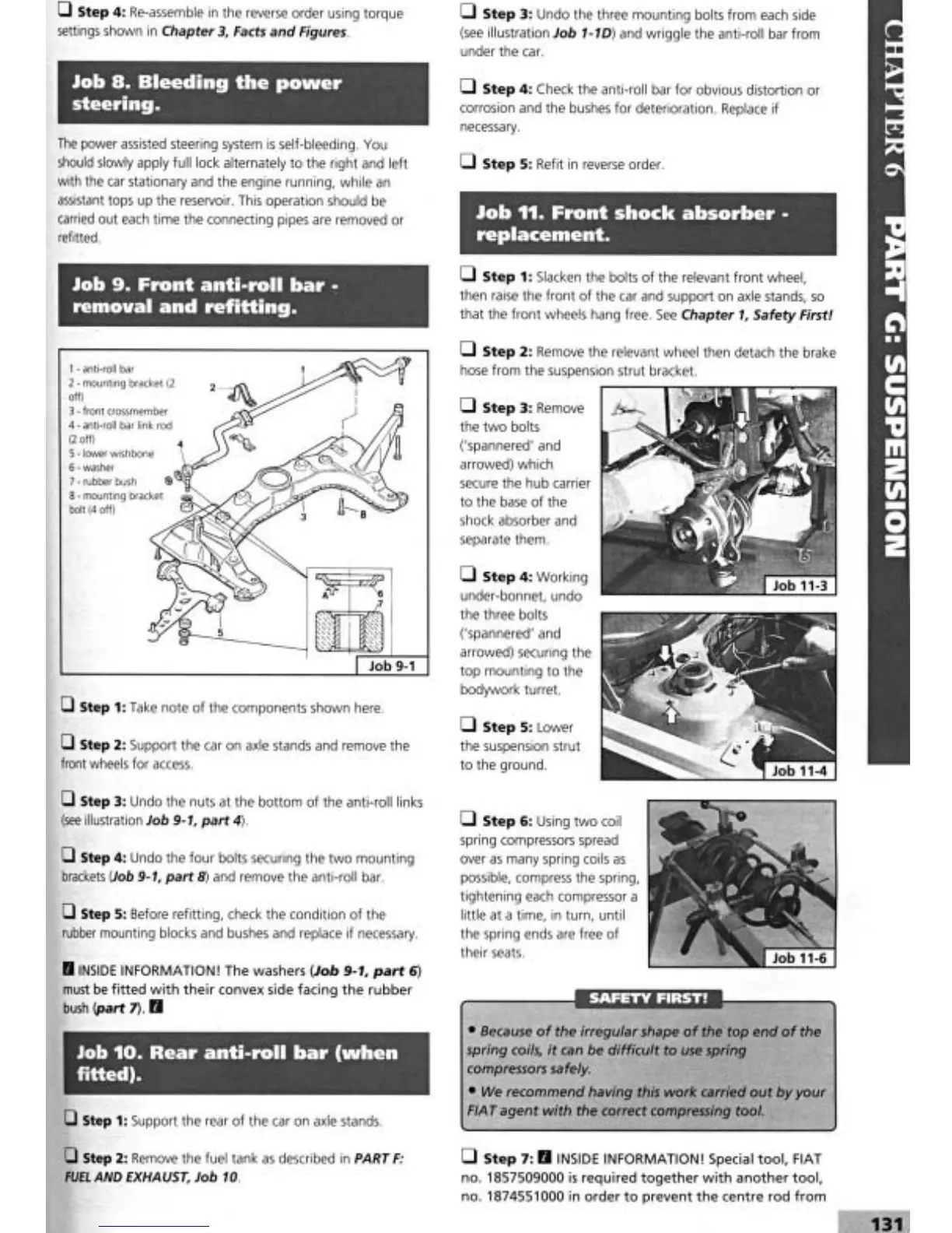 Fiat Tempra 1990 - Bleeding the Power Steering; Front Anti-Roll Bar; Front Shock Absorber; Rear Anti-Roll Bar