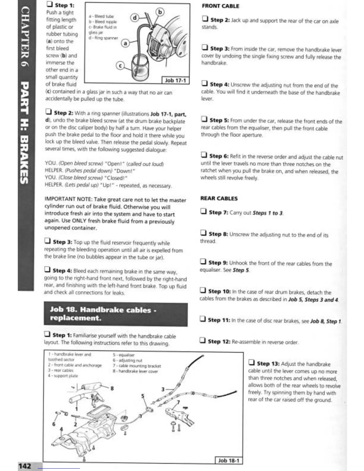 Fiat Tempra 1990 - Handbrake Cables Replacement; Front Cable
