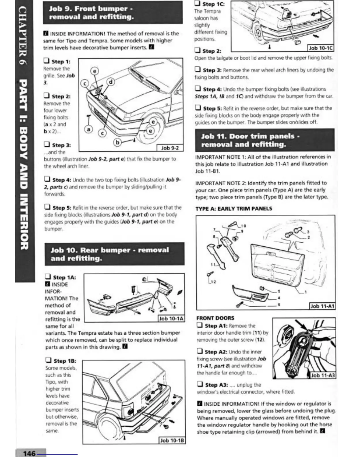 Fiat Tempra 1990 - Front Bumper; Rear Bumper Removal and Refitting; Door Trim Panels