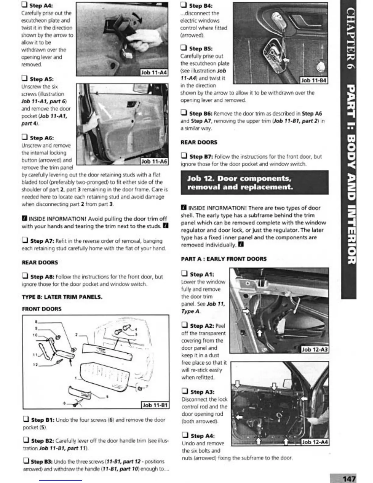 Fiat Tempra 1990 - Door Components; Rear Doors; Front Doors; Early Front Doors