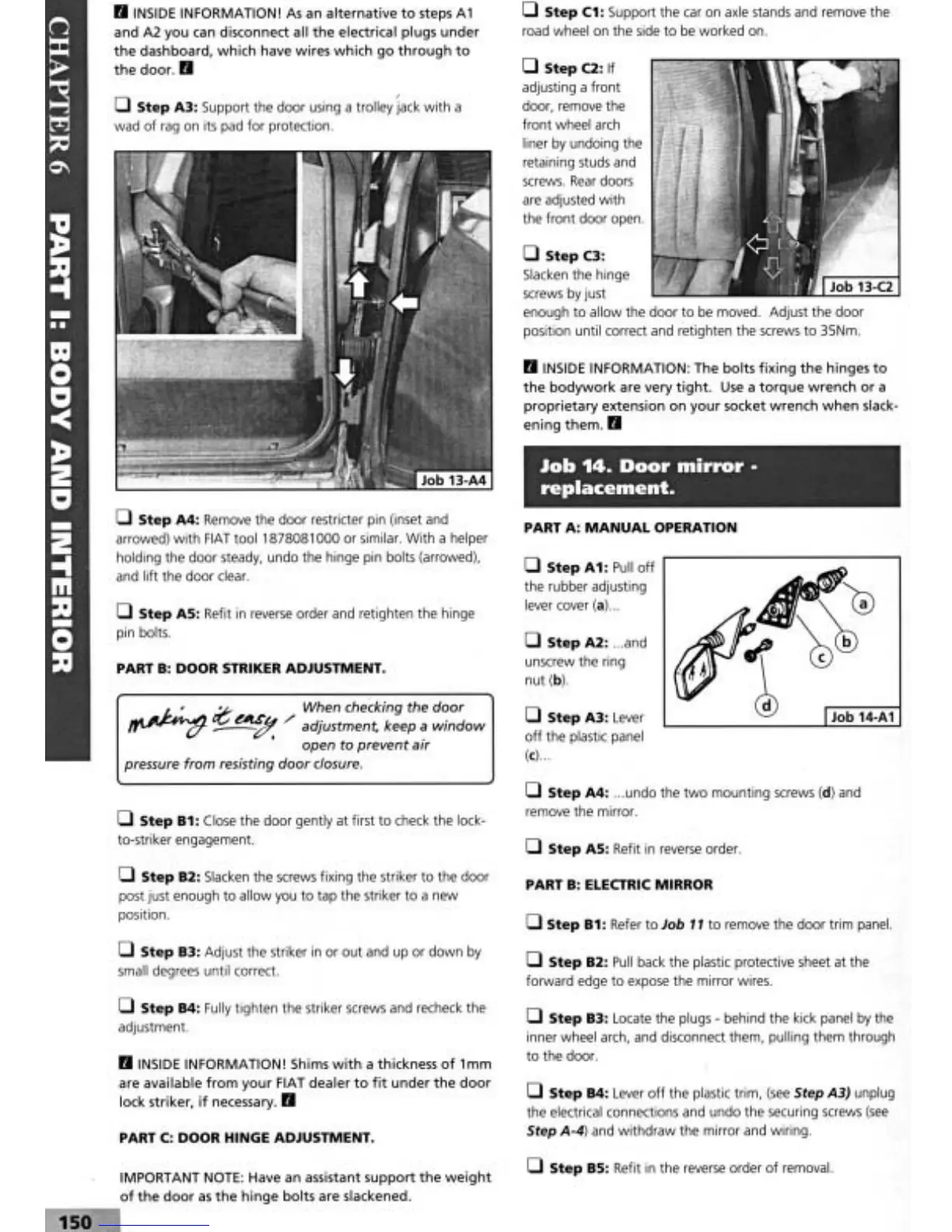 Fiat Tempra 1995 - Door Mirror; Door Striker Adjustment; Electric Mirror; Door Hinge Adjustmnet