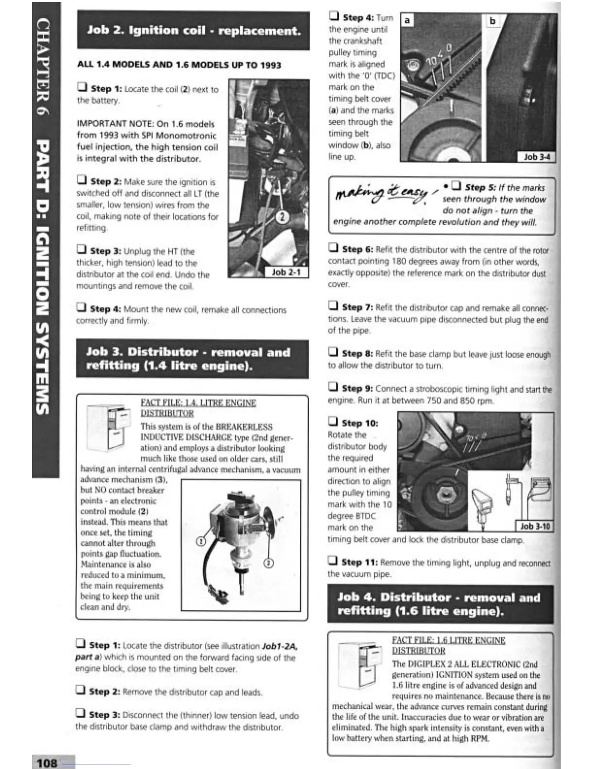 Fiat Tipo 1990 - Ignition Coil Replacement; Distributor; Distributor Removal and Refitting
