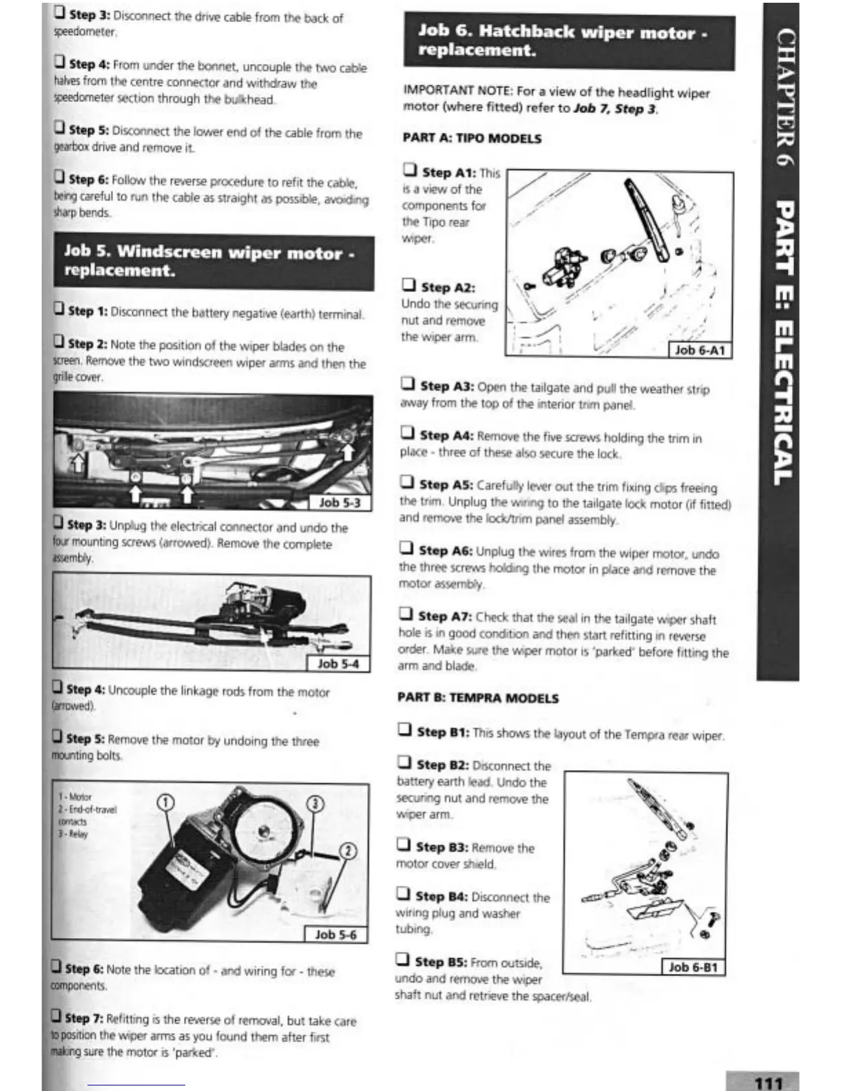 Fiat Tipo 1990 - Windscreen Wiper Motor Replacement; Hatchback Wiper Motor