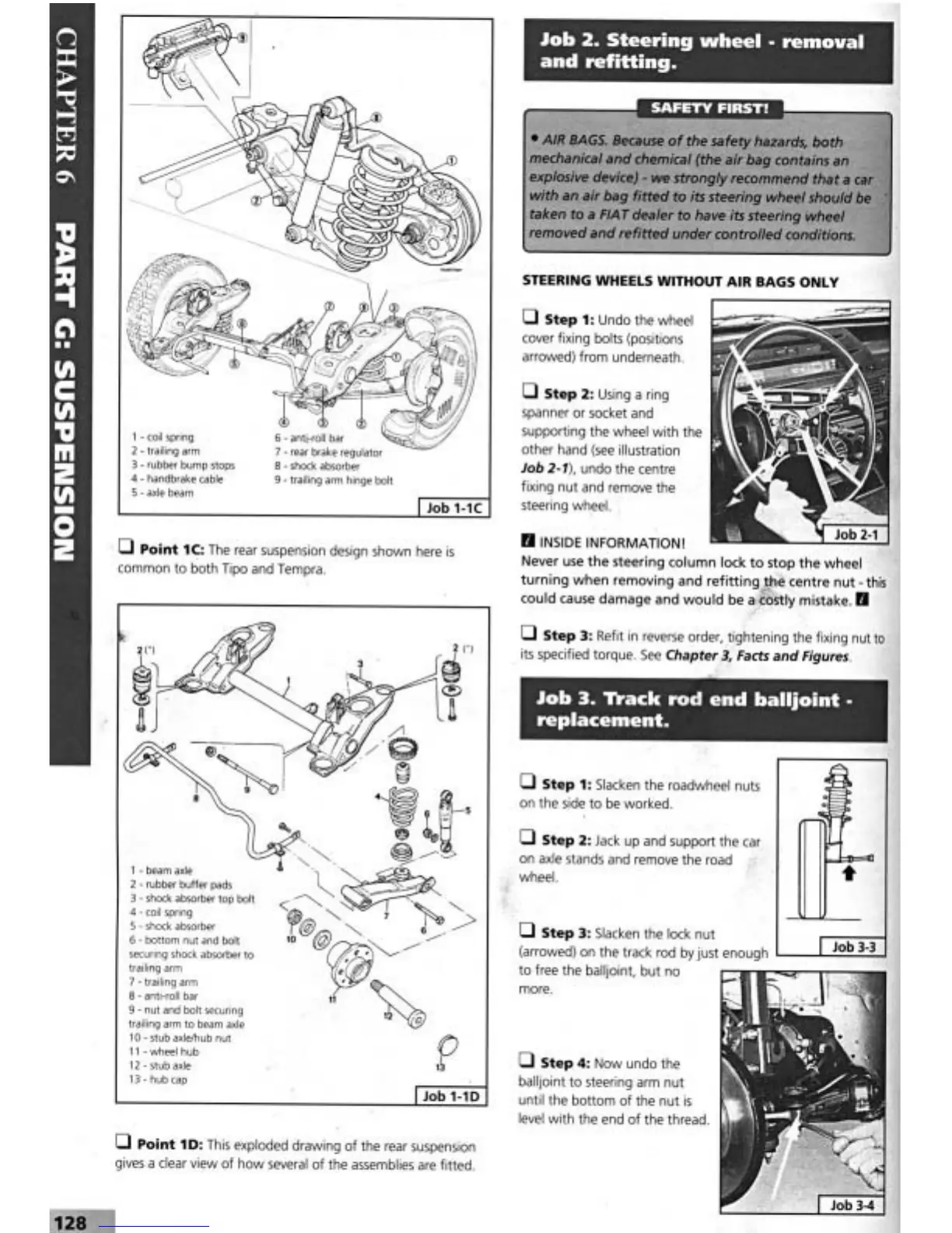 Fiat Tipo 1990 - Steering Wheel Removal and Refitting; Track Rod End Balljoint Replacement