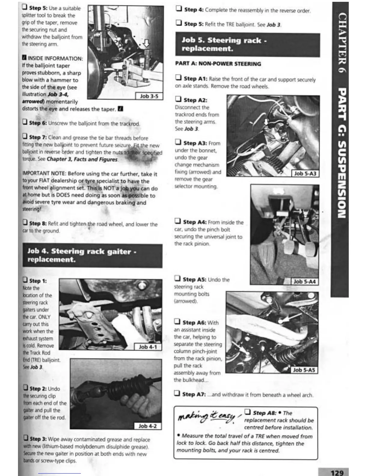 Fiat Tipo 1990 - Steering Rack Galter Replacement; Steering Rack Replacement