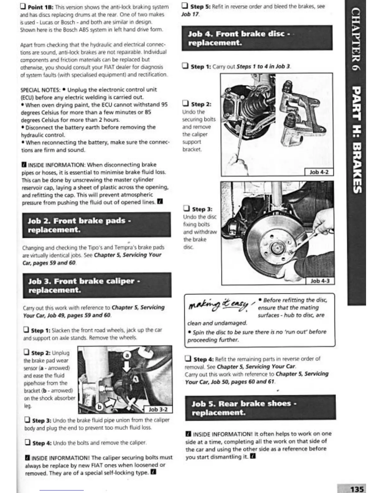 Fiat Tipo 1990 - Front Brake Pads; Front Brake Caliper; Front Brake Disc; Rear Brake Shoes