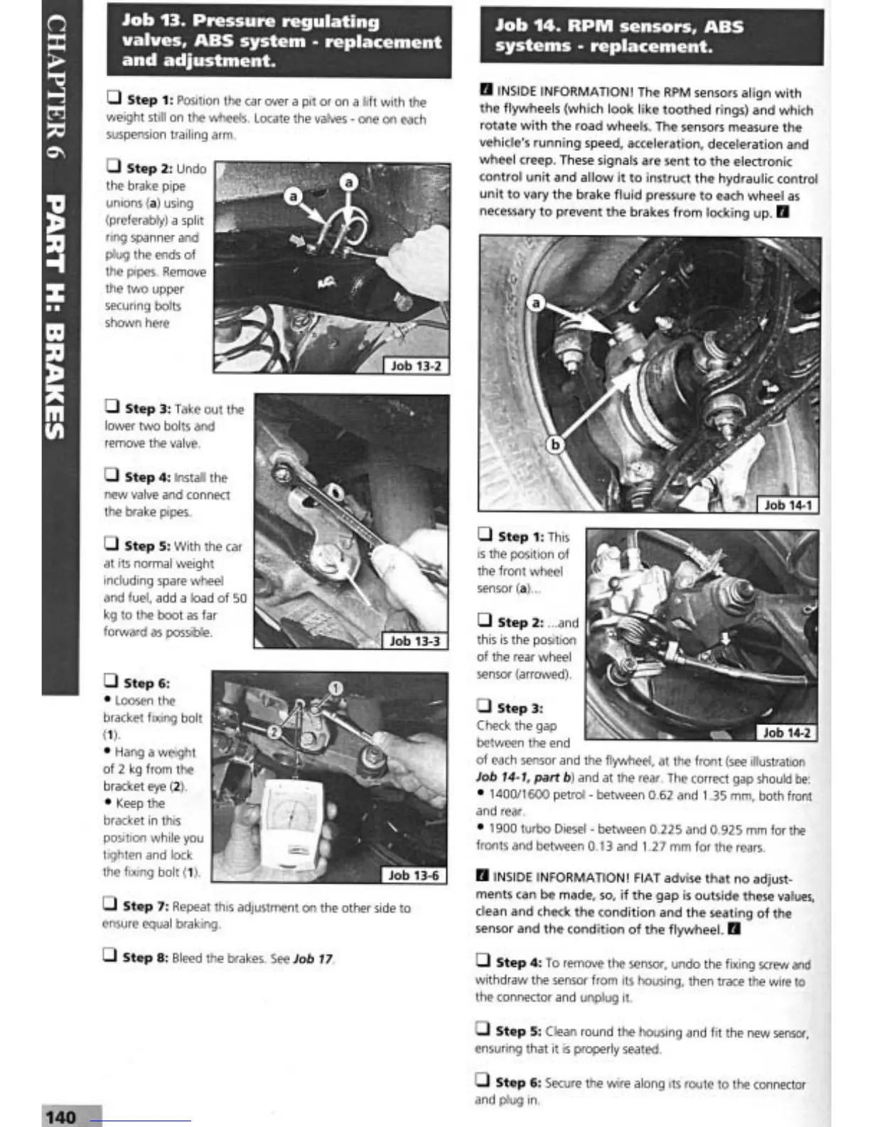Fiat Tipo 1990 - Pressure Regulating Valves, ABS System; RPM Sensors, ABS Systems