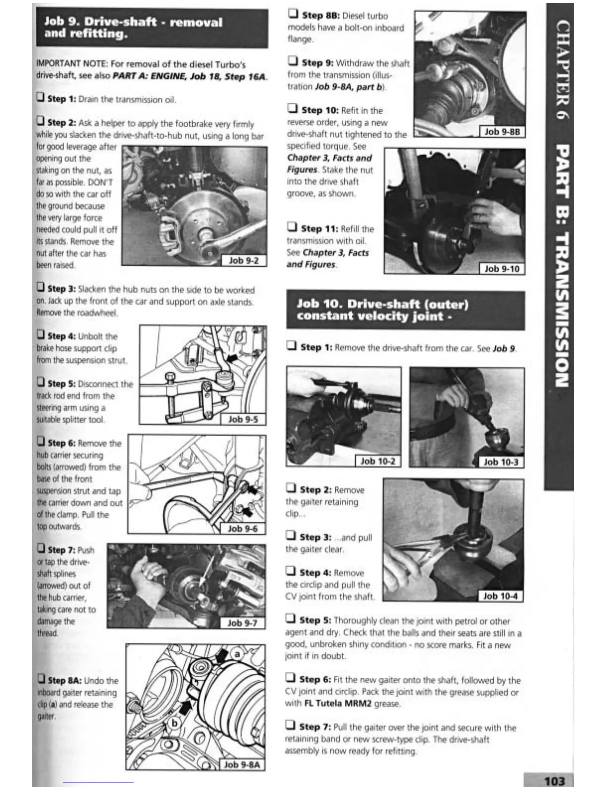 Fiat Tipo 1995 - Drive Shaft Removal and Refitting; Drive Shaft Constant Velocity Joint