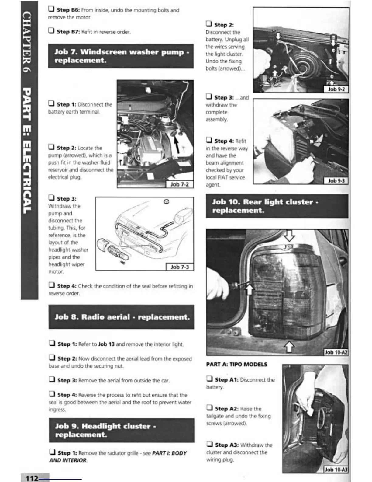 Fiat Tipo 1995 - Windscreen Washer Pump - Replacement; Radio Aerial Replacement; Rear Light Cluster Replacement