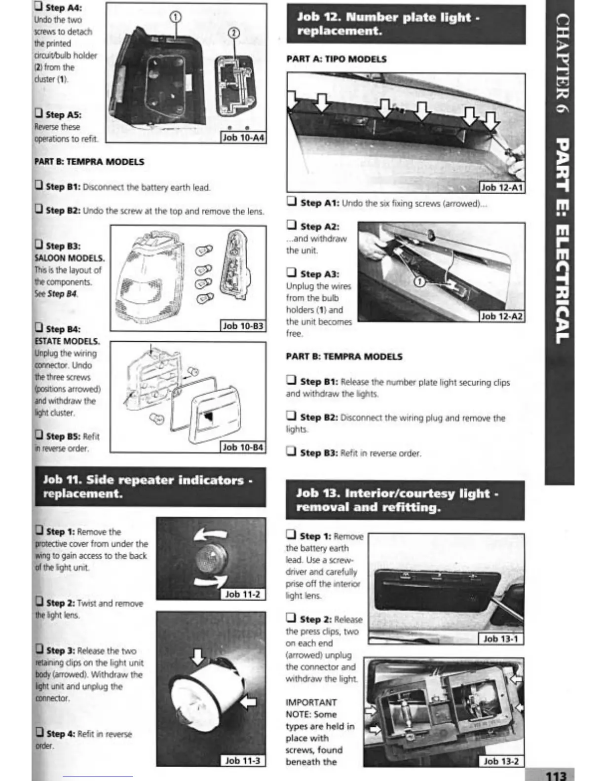 Fiat Tipo 1995 - Number Plate Light Replacement; Side Repeater Indicators; Interior;Courtesy Light