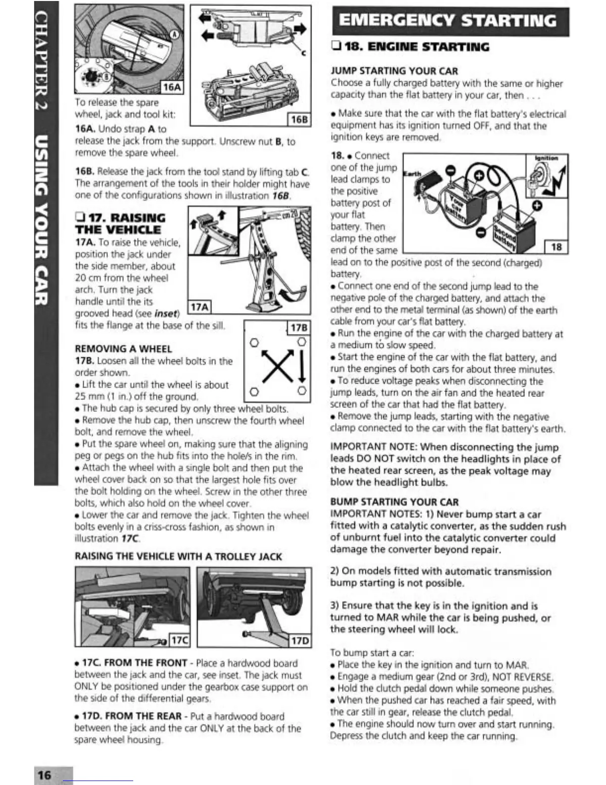 Fiat Tipo 1995 - Emergency Starting; Raising the Vehicle; Removing a Wheel; Jump Starting Your Car