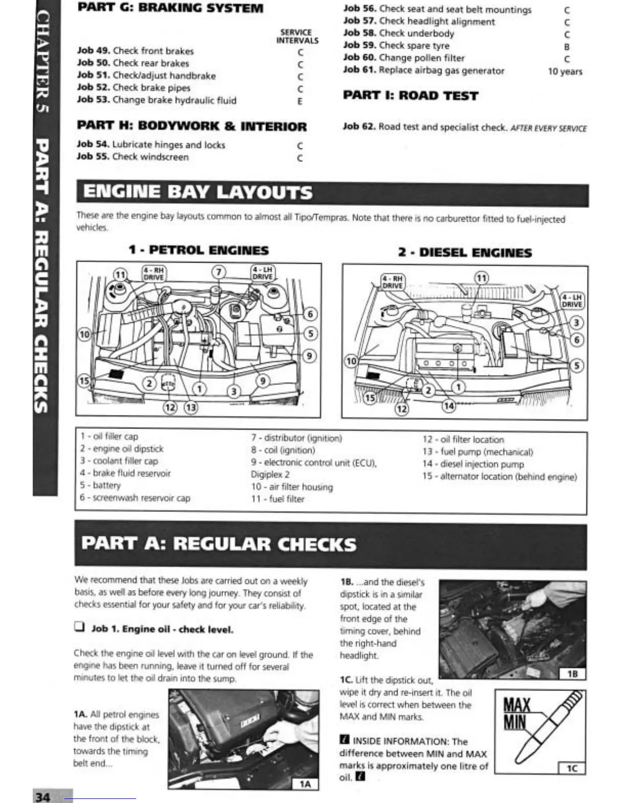 Fiat Tipo 1995 - Engine Bay Layouts; Engine Oil Check Level; Petrol Engines; Diesel Engines