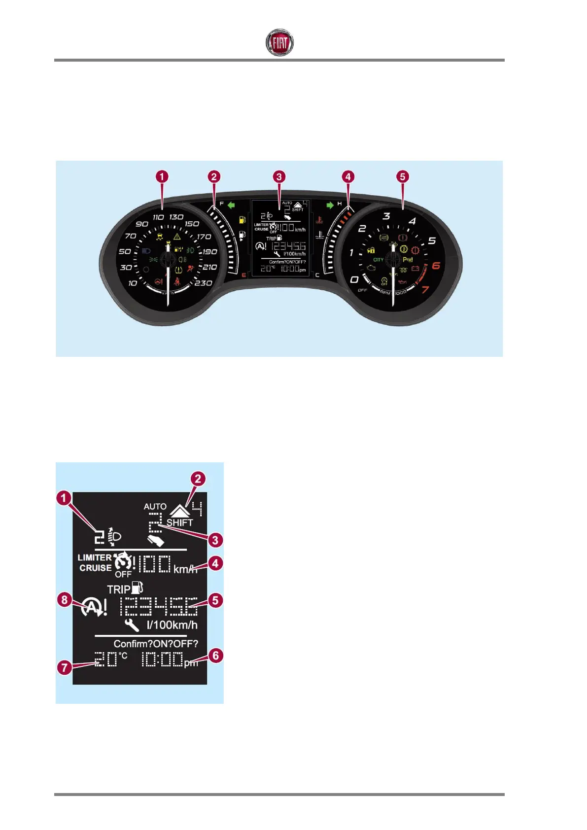 The car may be provided with a multifunction 3,5” LCD or 3.5” TFT display that shows useful