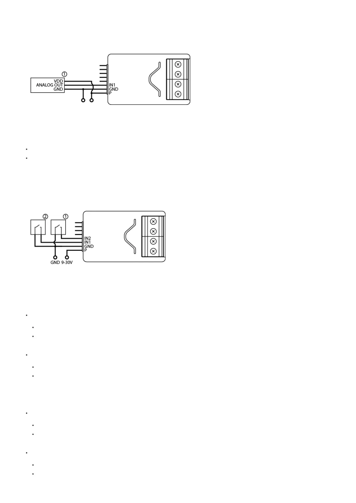 You connect normally opened or normally binary sensors to IN1/IN2 terminals.