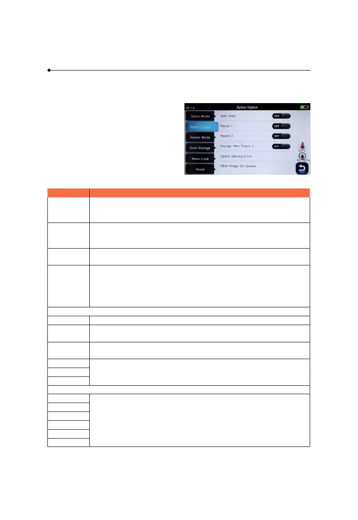 If “Pause 2” is set to ON, splicing operation pauses after ber
