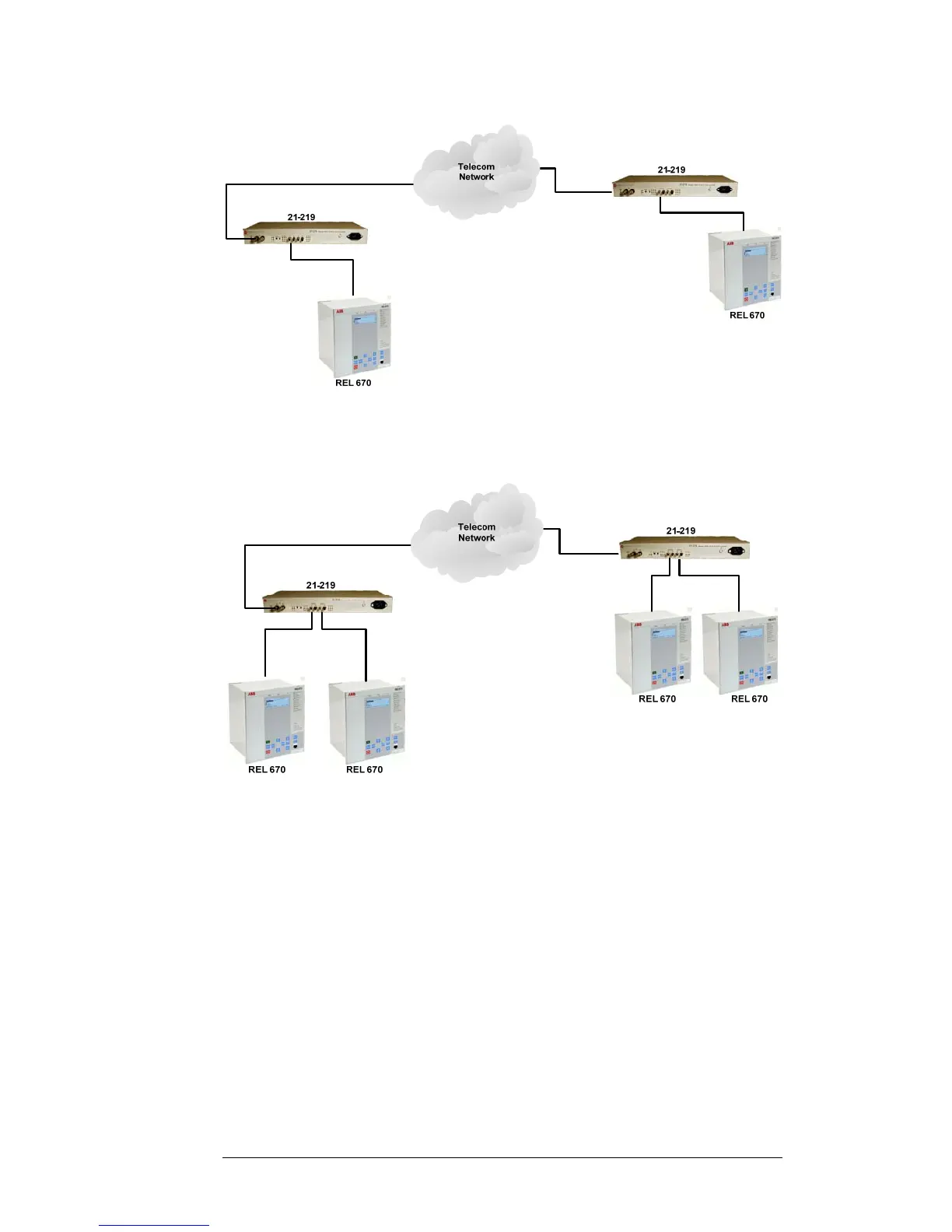 Singel IEEE C37.94 link via Telecom network.
