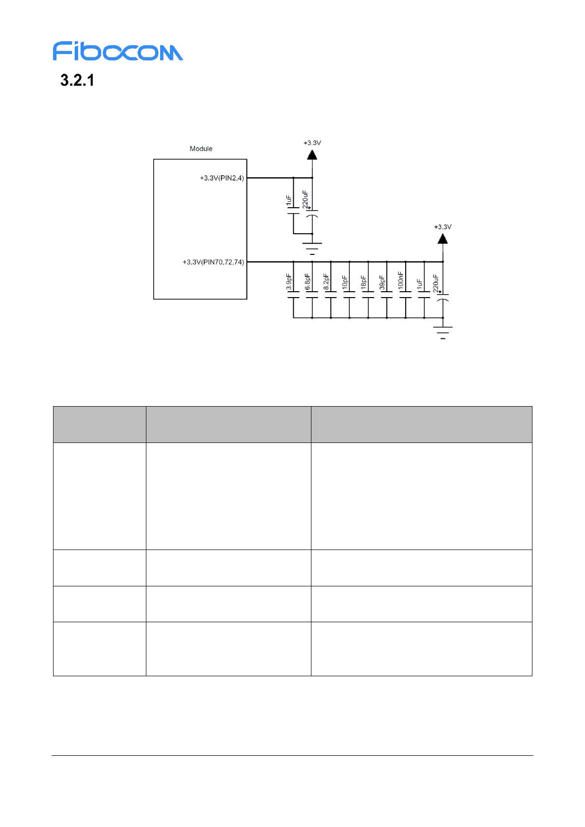 The FM350 module should be powered through the +3.3V pins, and the power supply design is shown in