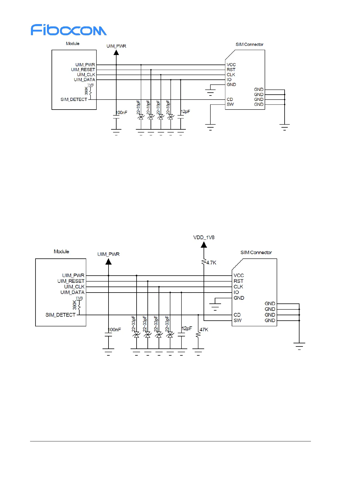 The reference circuit design for N.O. (Normally Open) SIM card slot is shown in Figure 3-17:
