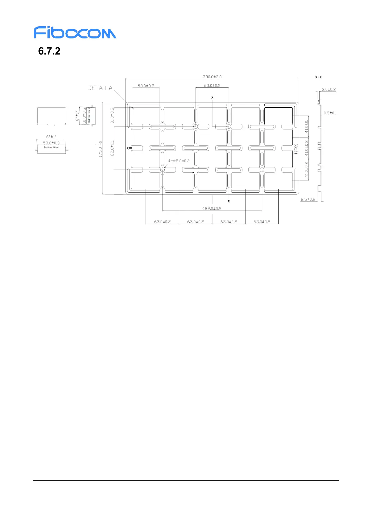 The pallet size is 330x175x6.5mm, and is shown in Figure 6-11:
