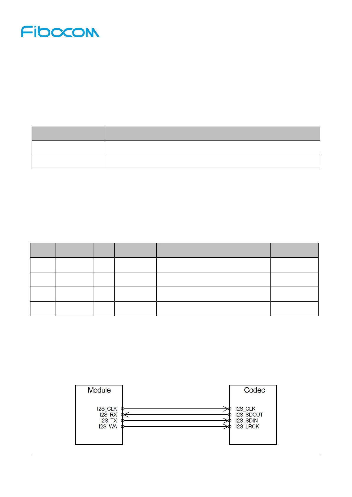 mode. The signal level of the I2S interface is 1.8V. Please refer to “FIBOCOM Digital Voice” description