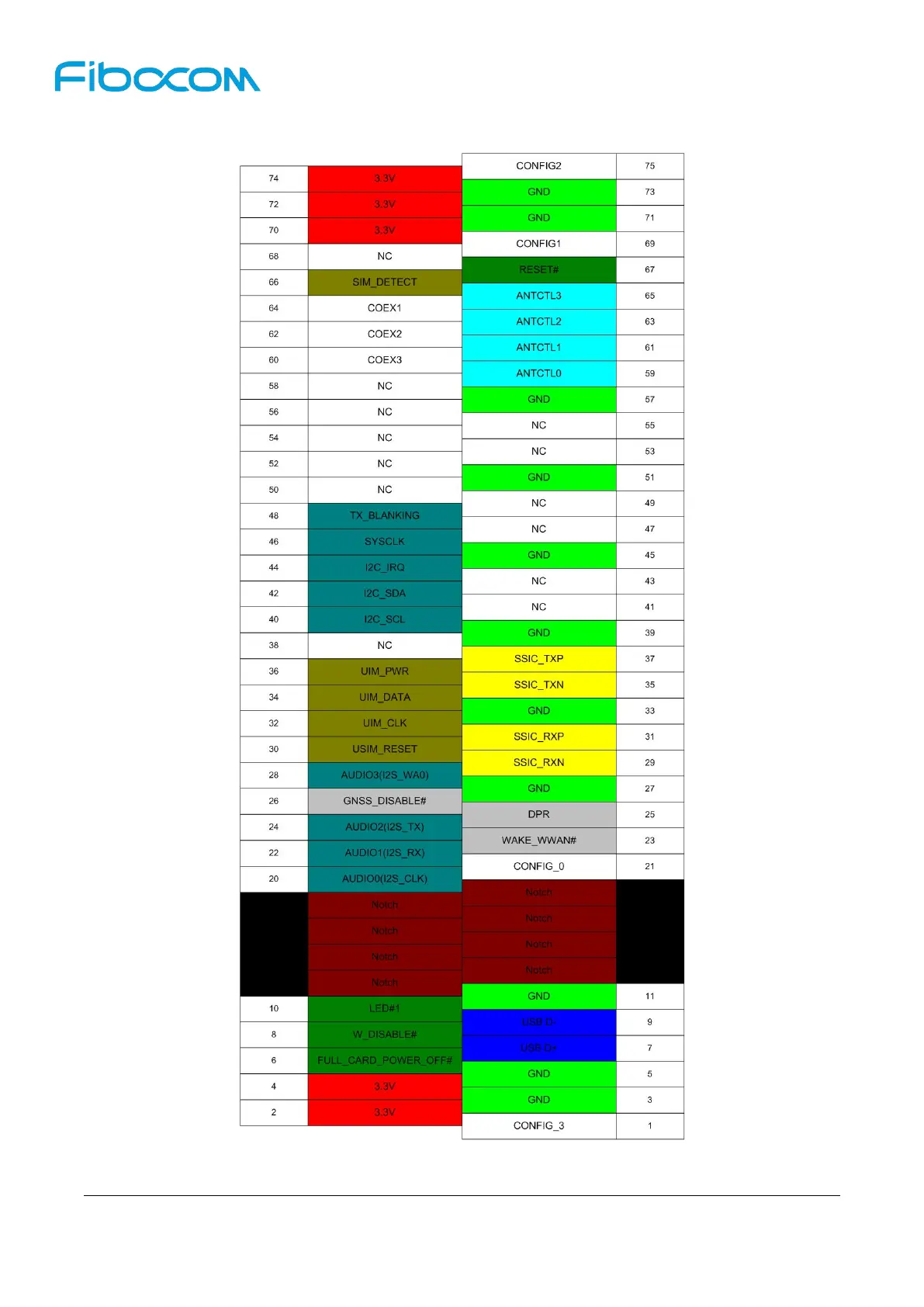 Fibocom L831-EAU-01 - M.2 Pin Distribution