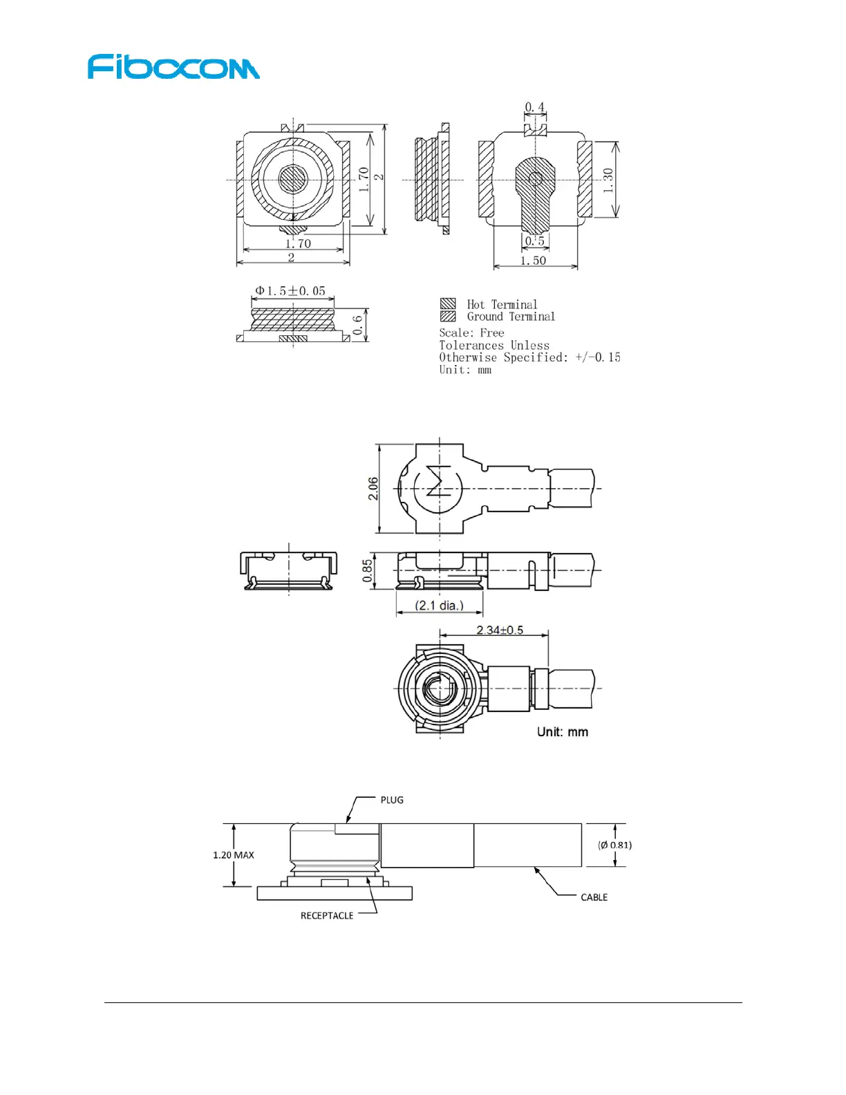 Figure 4-4 Schematic diagram of 0.81mm coaxial antenna connected to the RF connector