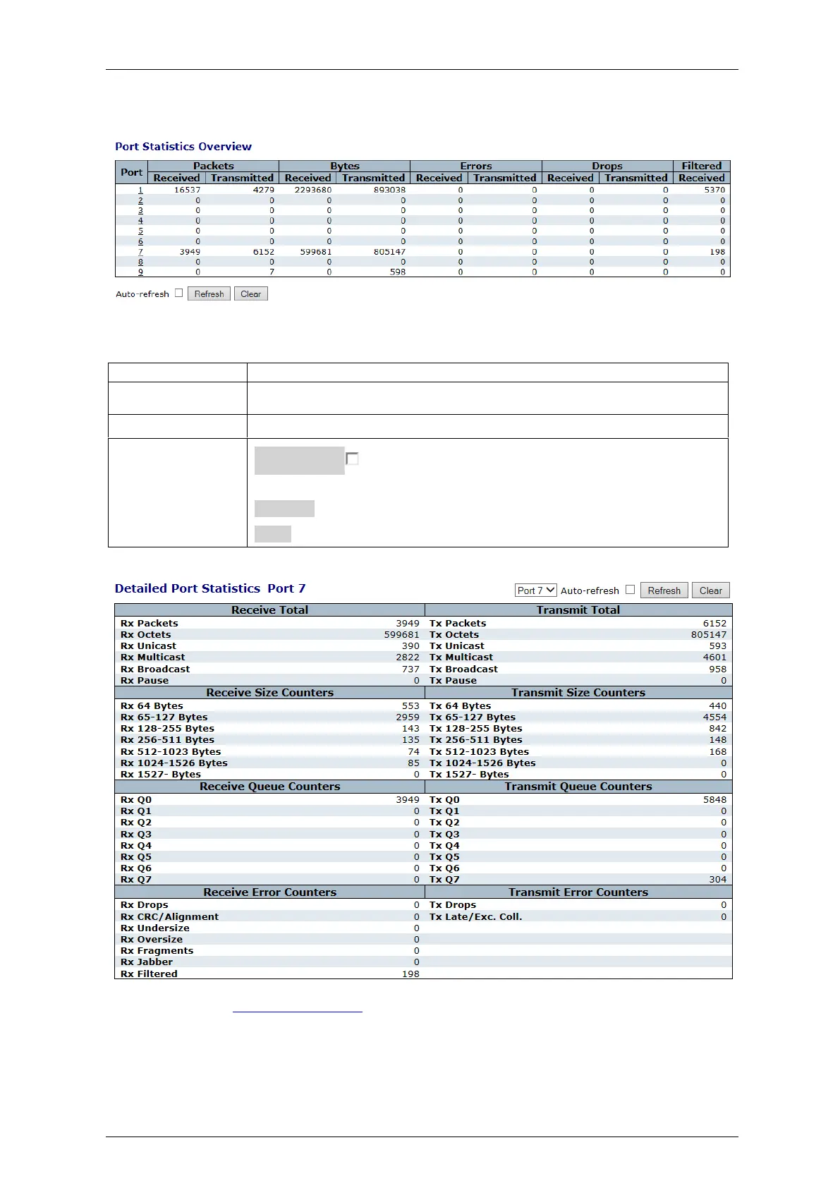 By clicking selected port 7, you get its detailed port statistics as shown: