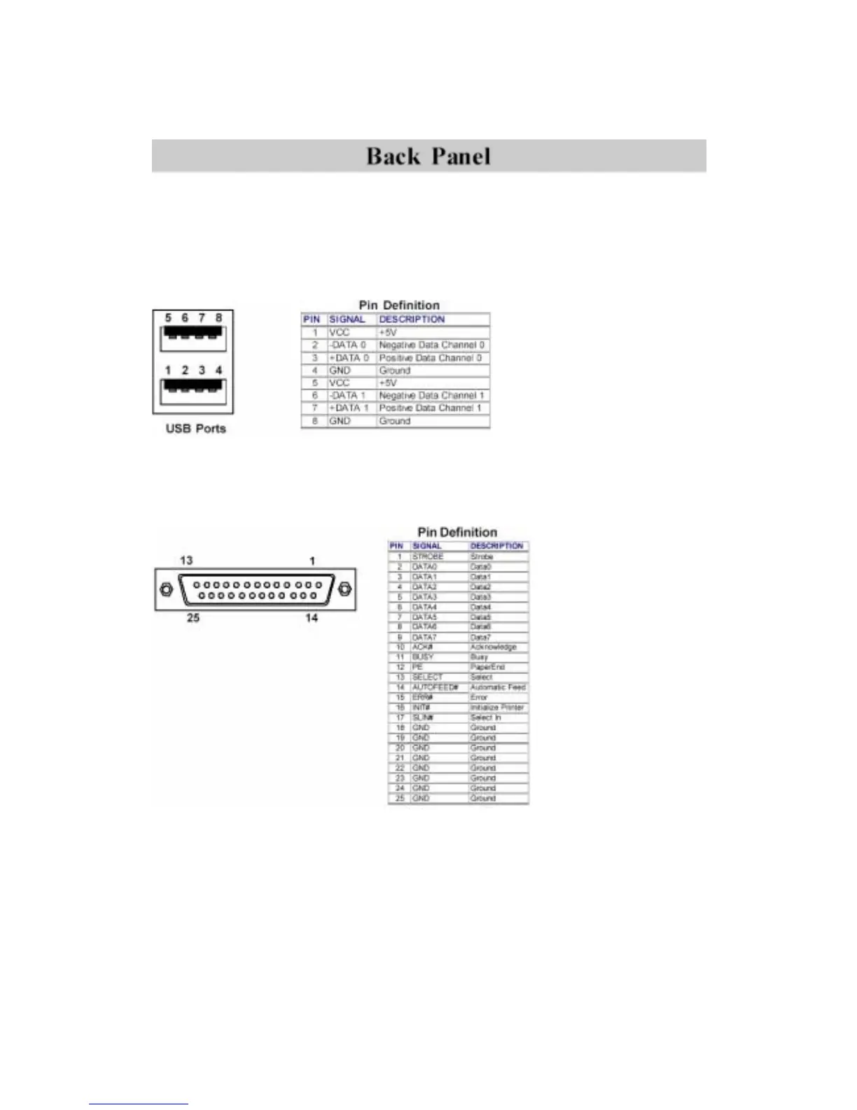 The mainboard provides a 25-pin female connector for LPT (parallel port). A