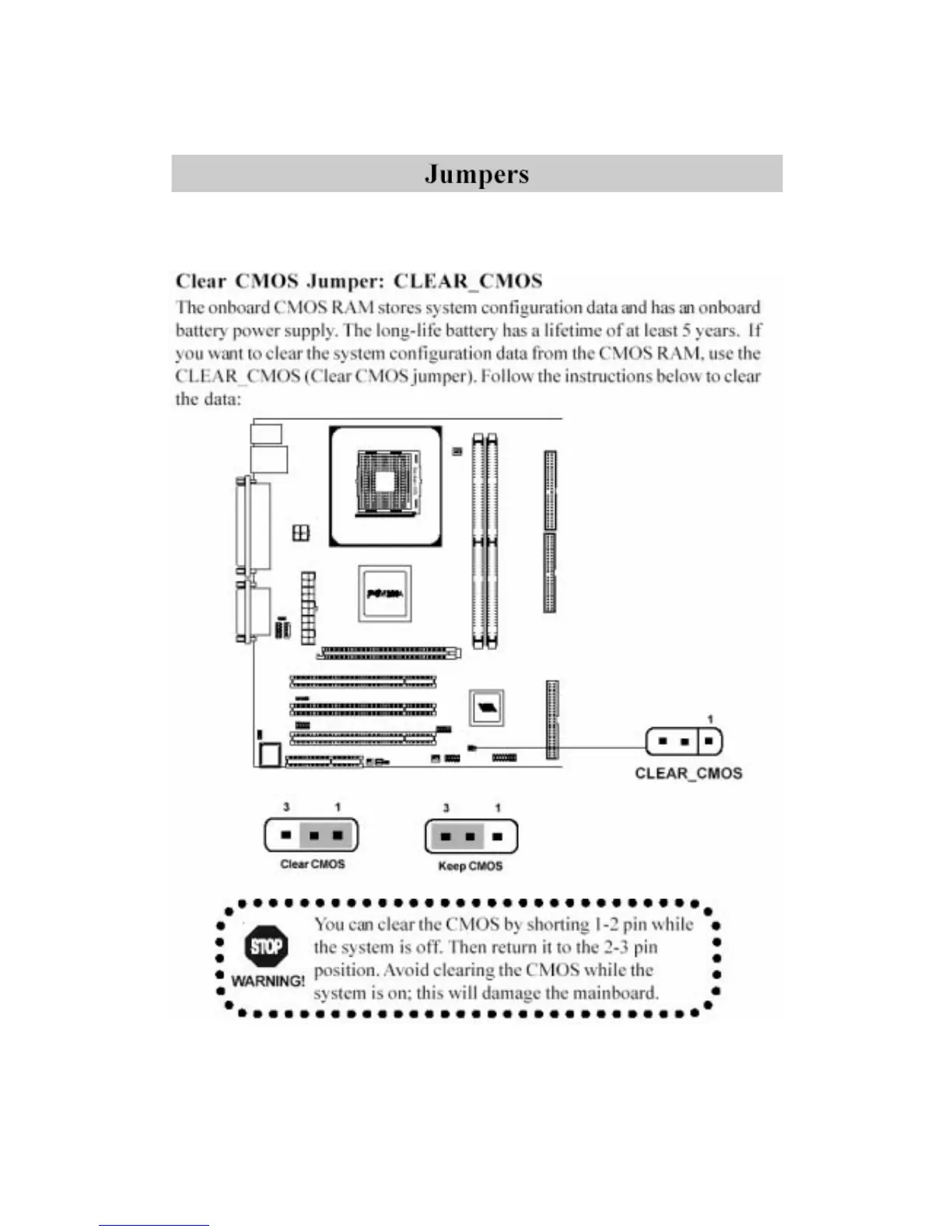 your mainboard’s functions through the use of the jumpers.