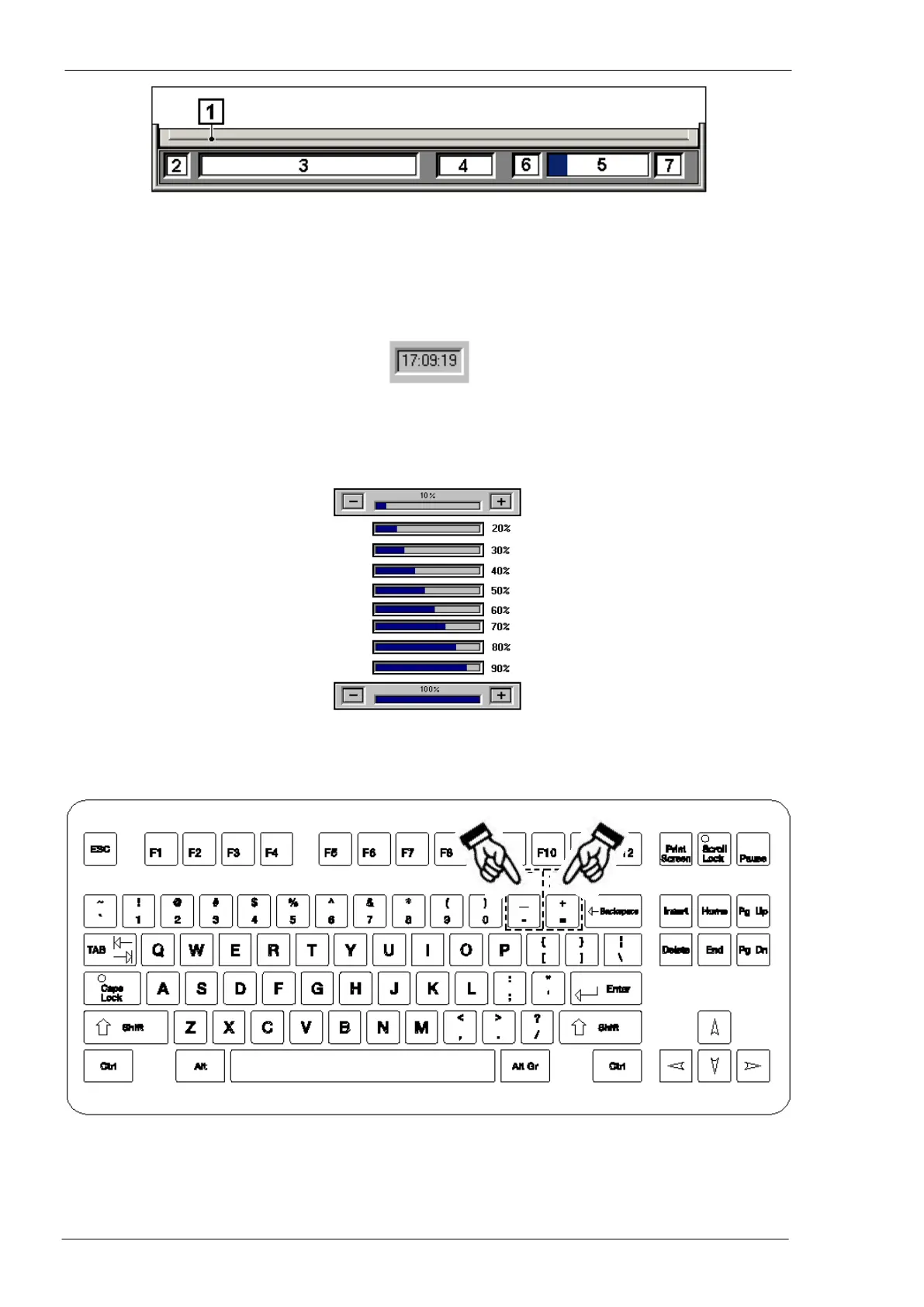 6, 7 by “+” and “-“ graphic push buttons or the corresponding keys of the PC keyboard, the operator can