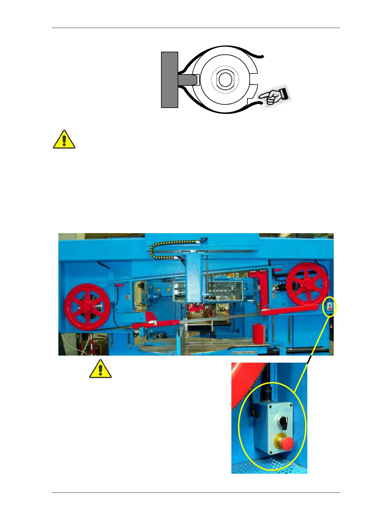 For its replacement, use the push button station normally placed near one of the two wheels for band rota-