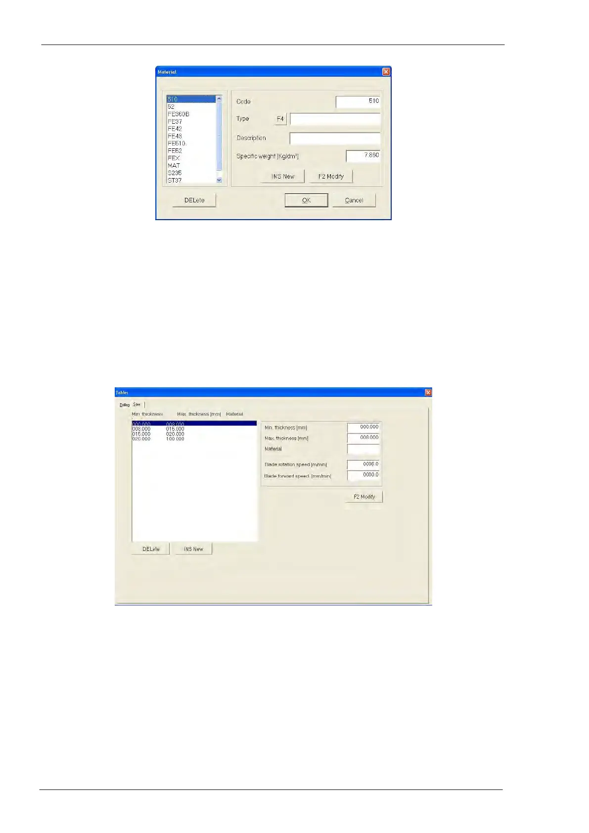 The meaning of “DELete”, “INS New” and “F2 Modify” push buttons is the same previously described.