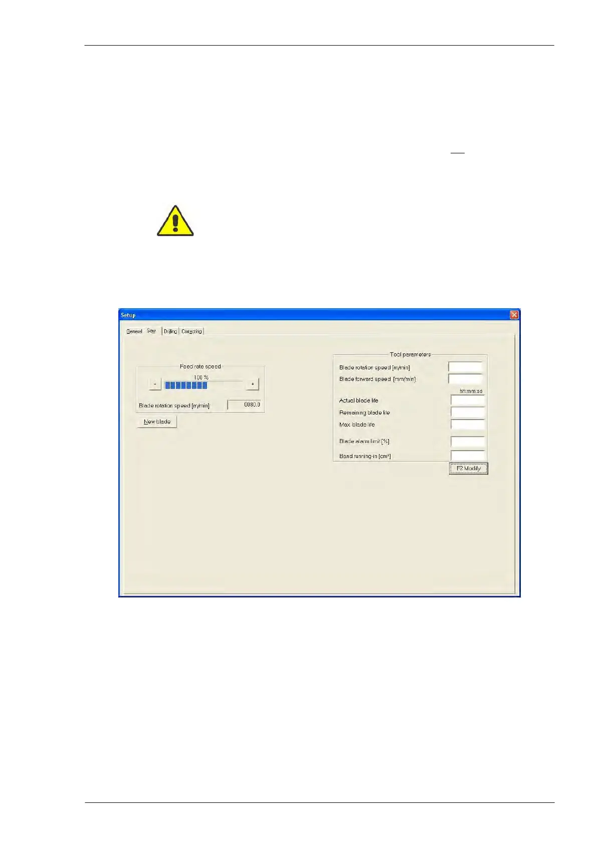Cutting operation setup window