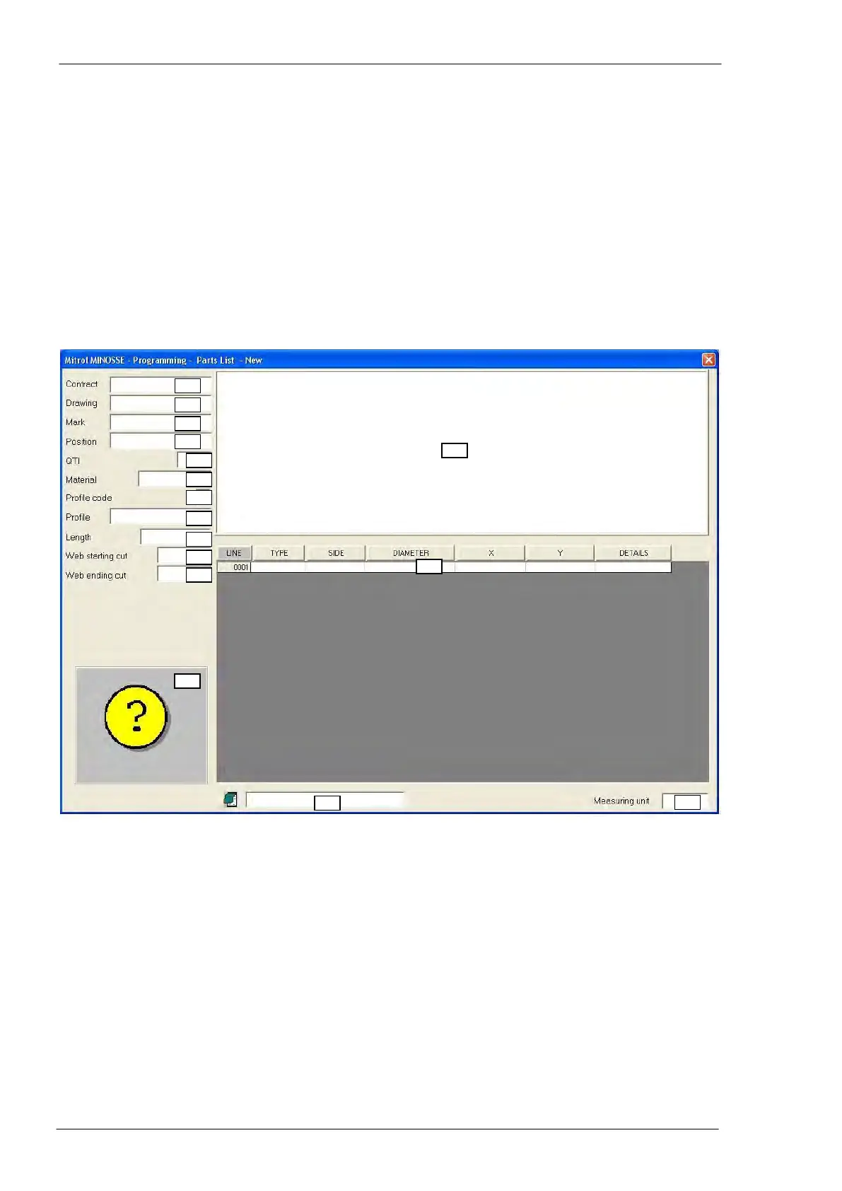 Pressing the “New” push-button in the programming section, a window to compile the part program is dis-