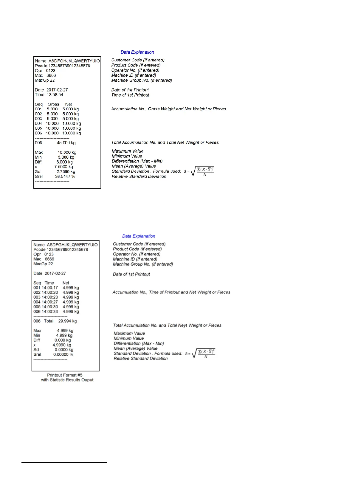 Transaction data is sent in journal output format with time and net weight of each individual transaction. Refer to below