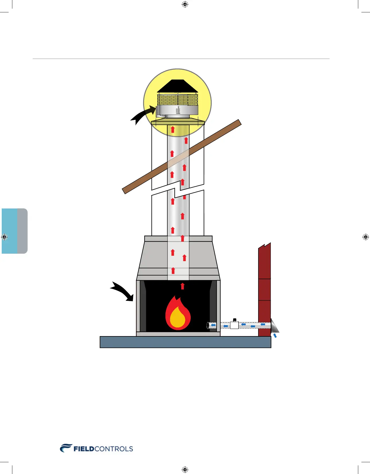 When there is a call for fire, the Flue Sentinel Gas Controller automatically opens the flue damper and engages the chimney fan.
