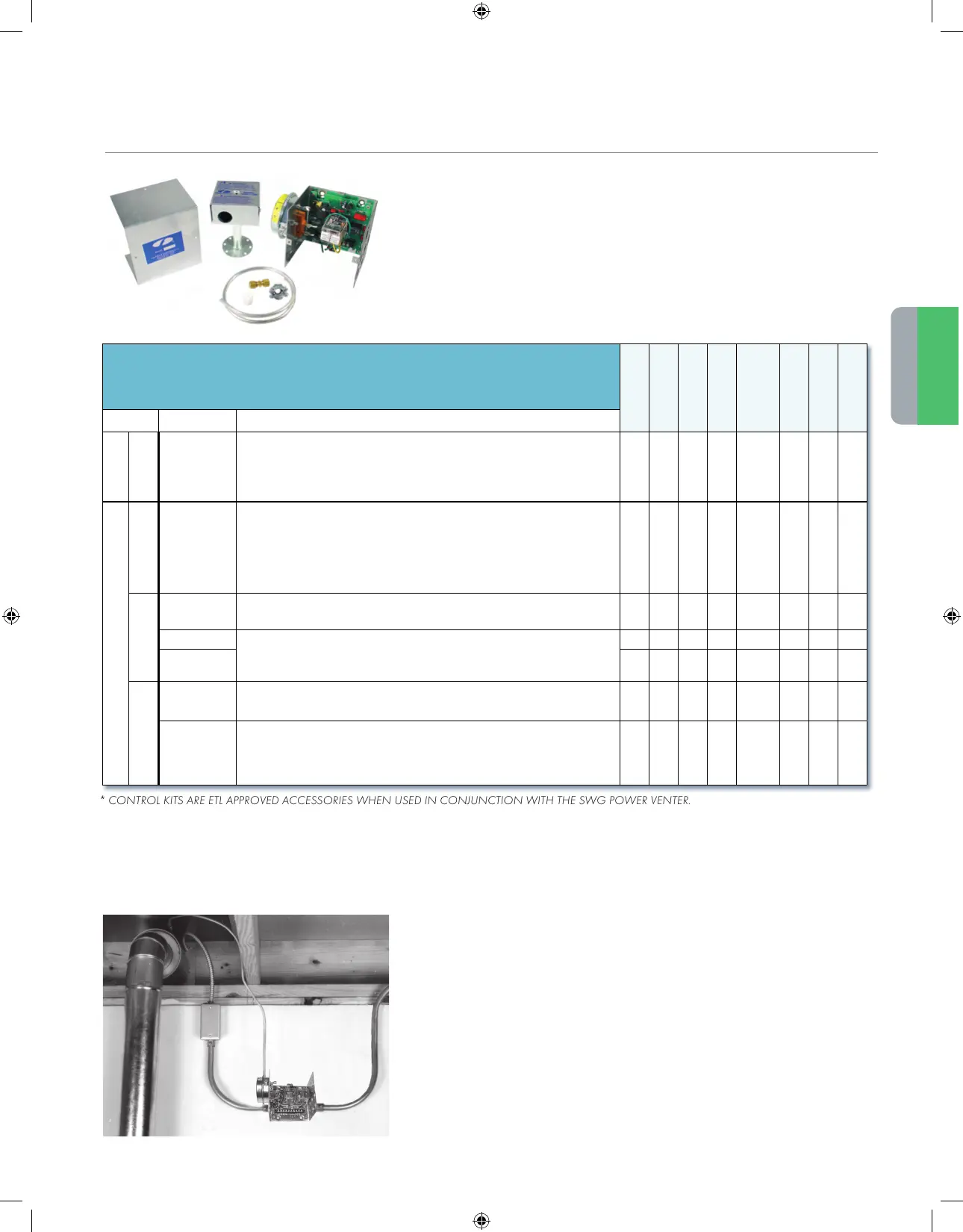 * CONTROL KITS ARE ETL APPROVED ACCESSORIES WHEN USED IN CONJUNCTION WITH THE SWG POWER VENTER.