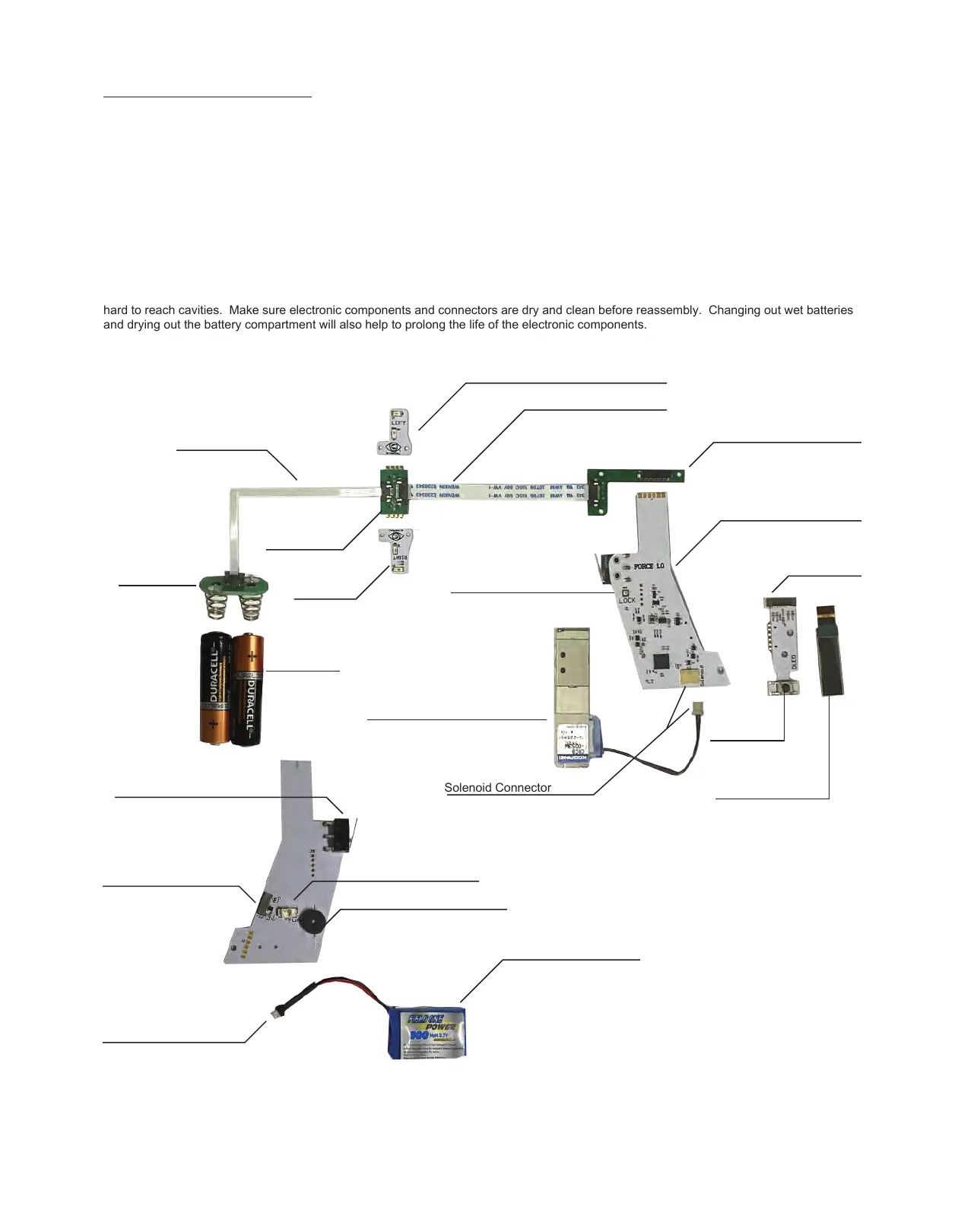 hard to reach cavities. Make sure electronic components and connectors are dry and clean before reassembly. Changing out wet batteries
