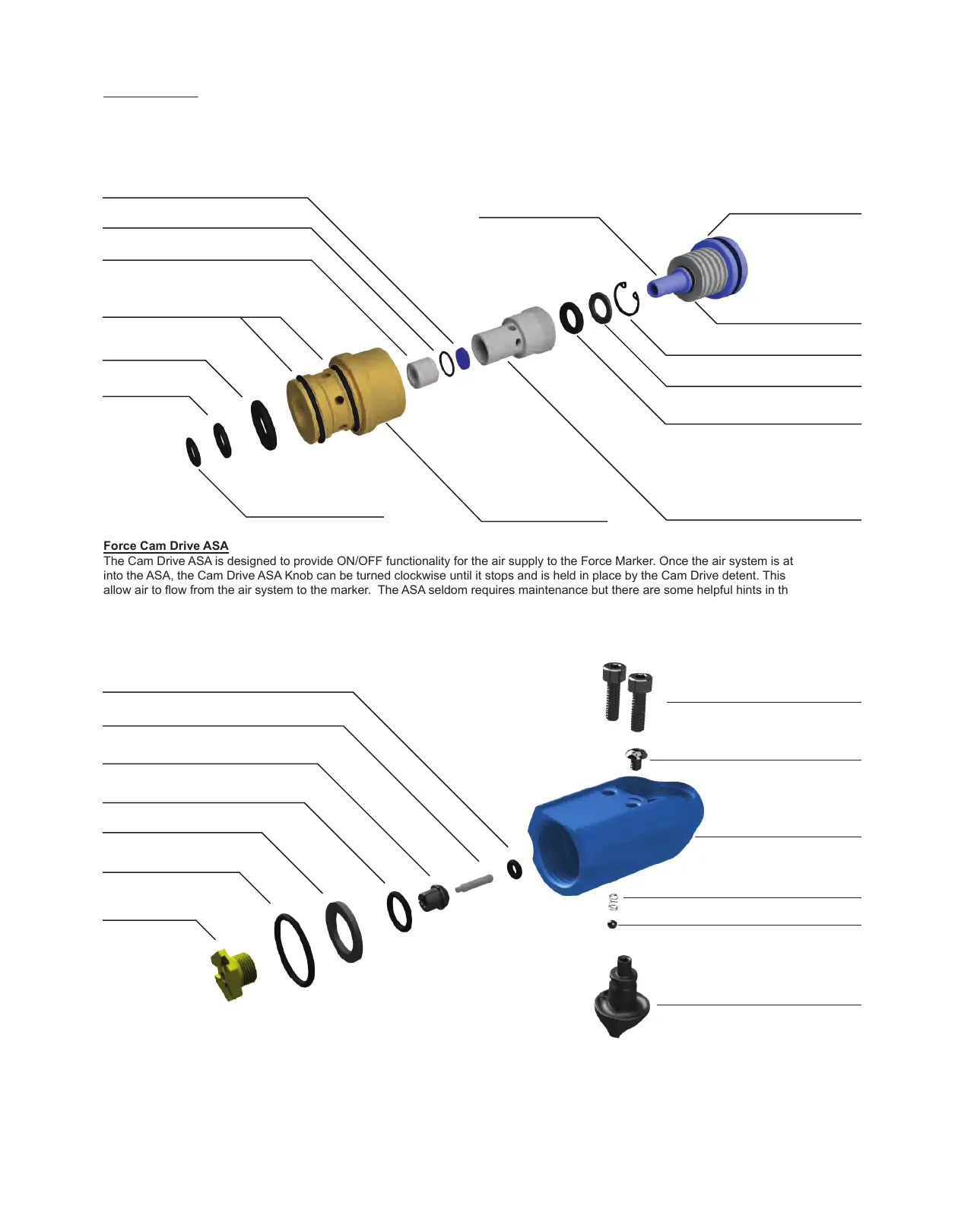 The Cam Drive ASA is designed to provide ON/OFF functionality for the air supply to the Force Marker. Once the air system is attached fully