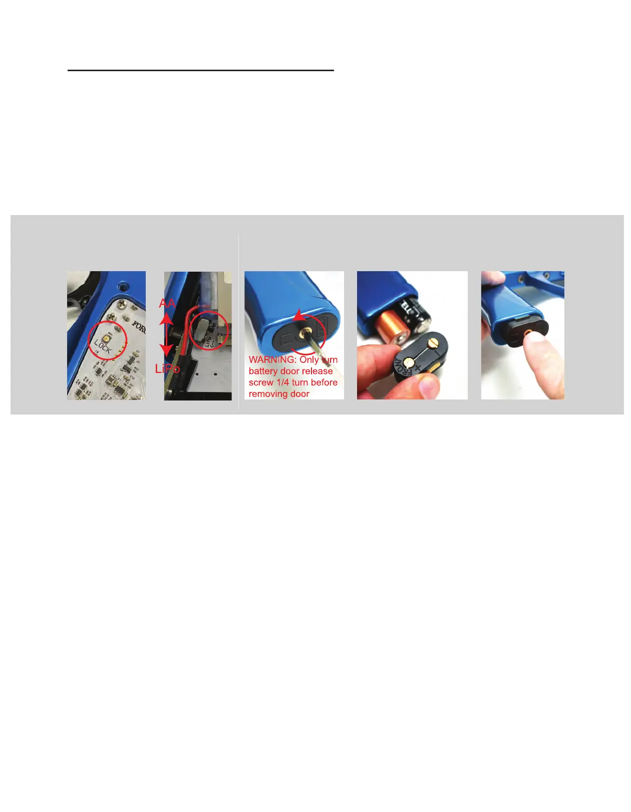 use a 1/8 inch allen wrench to open the battery door in the bottom of the fore grip (fig 3). Turn the battery door release