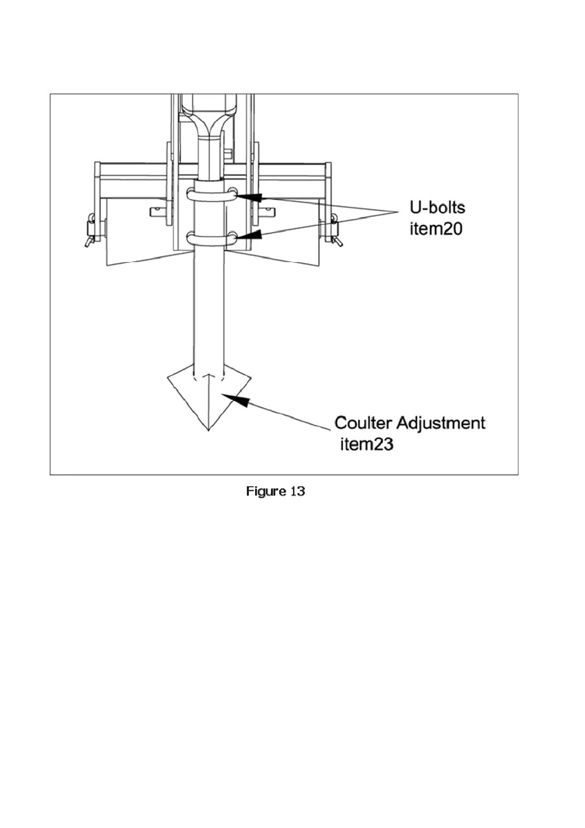 item 20 and lower coulter assembly down. Retighten U-bolts. See figure 13. Repeat