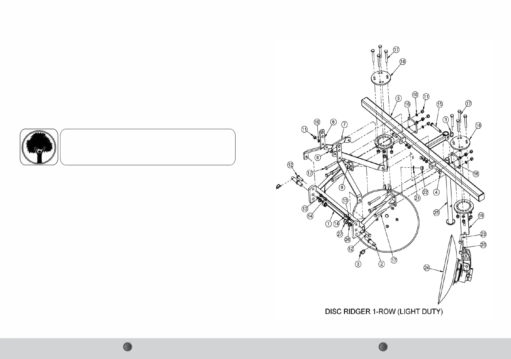 4. Never reverse the tractor when the disc ridger is engaged in the soil.