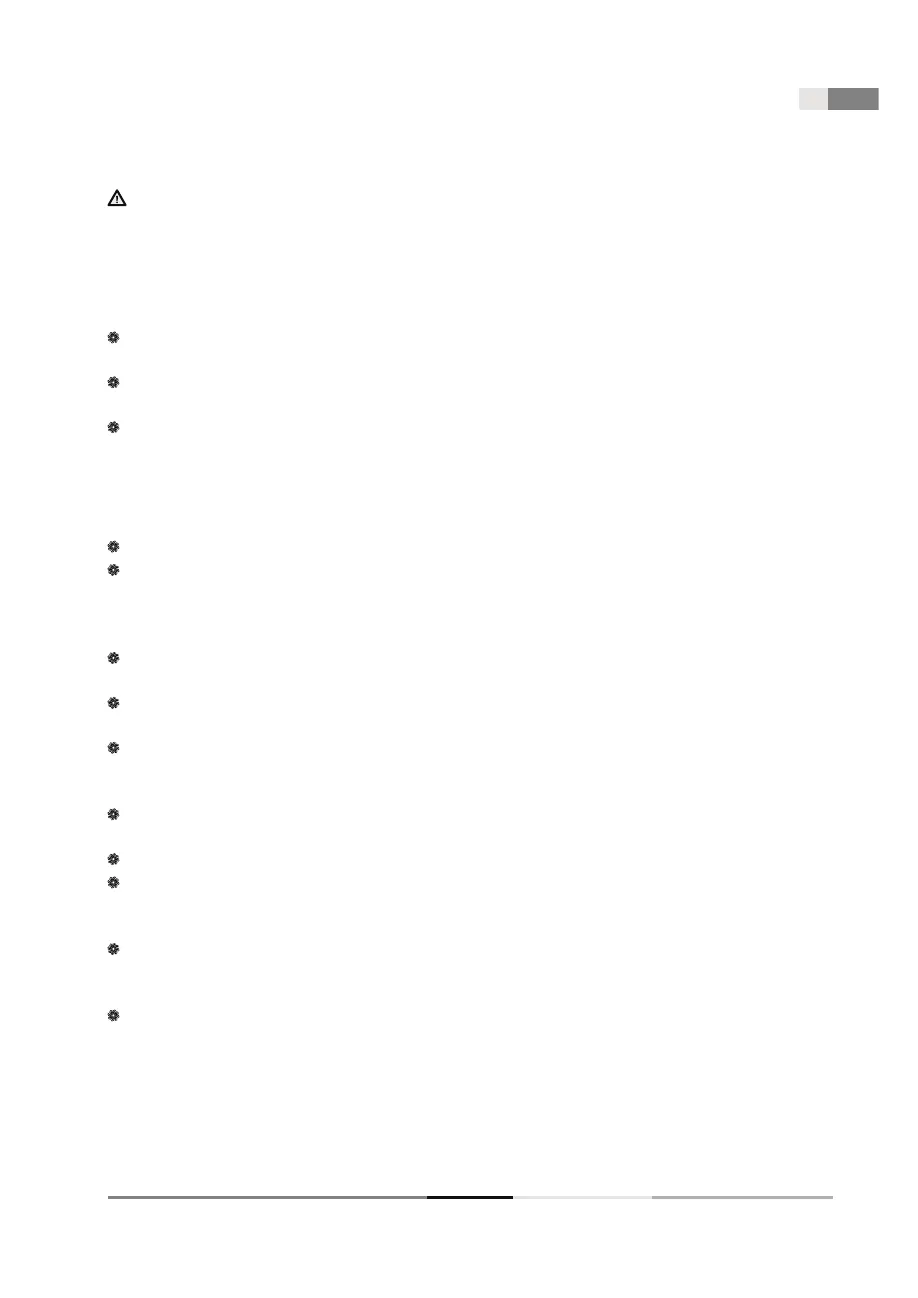 Never use the supply cable for other than intended purposes. Never use the cord for carrying or pulling the power