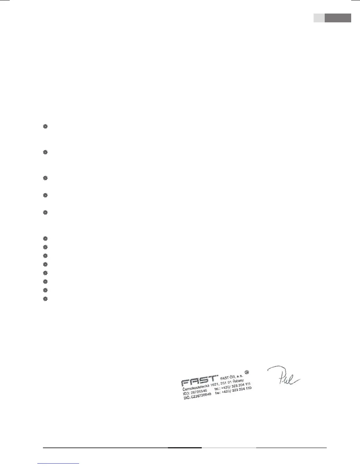 Trgovačko društvo FAST ČR, a.s.(d.d.) je ovlašteno pregovarati u ime proizvođača.