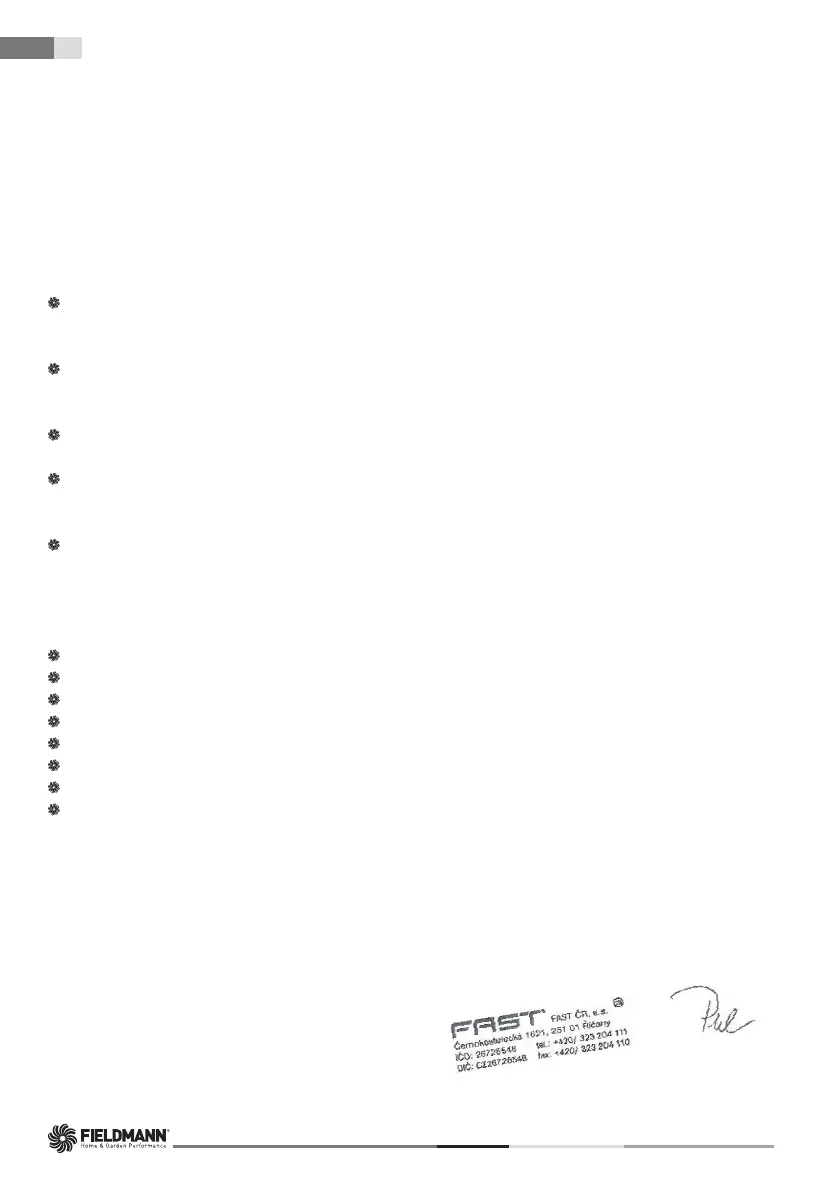 FAST ČR, a.s. is authorised to act on behalf of the manufacturer.